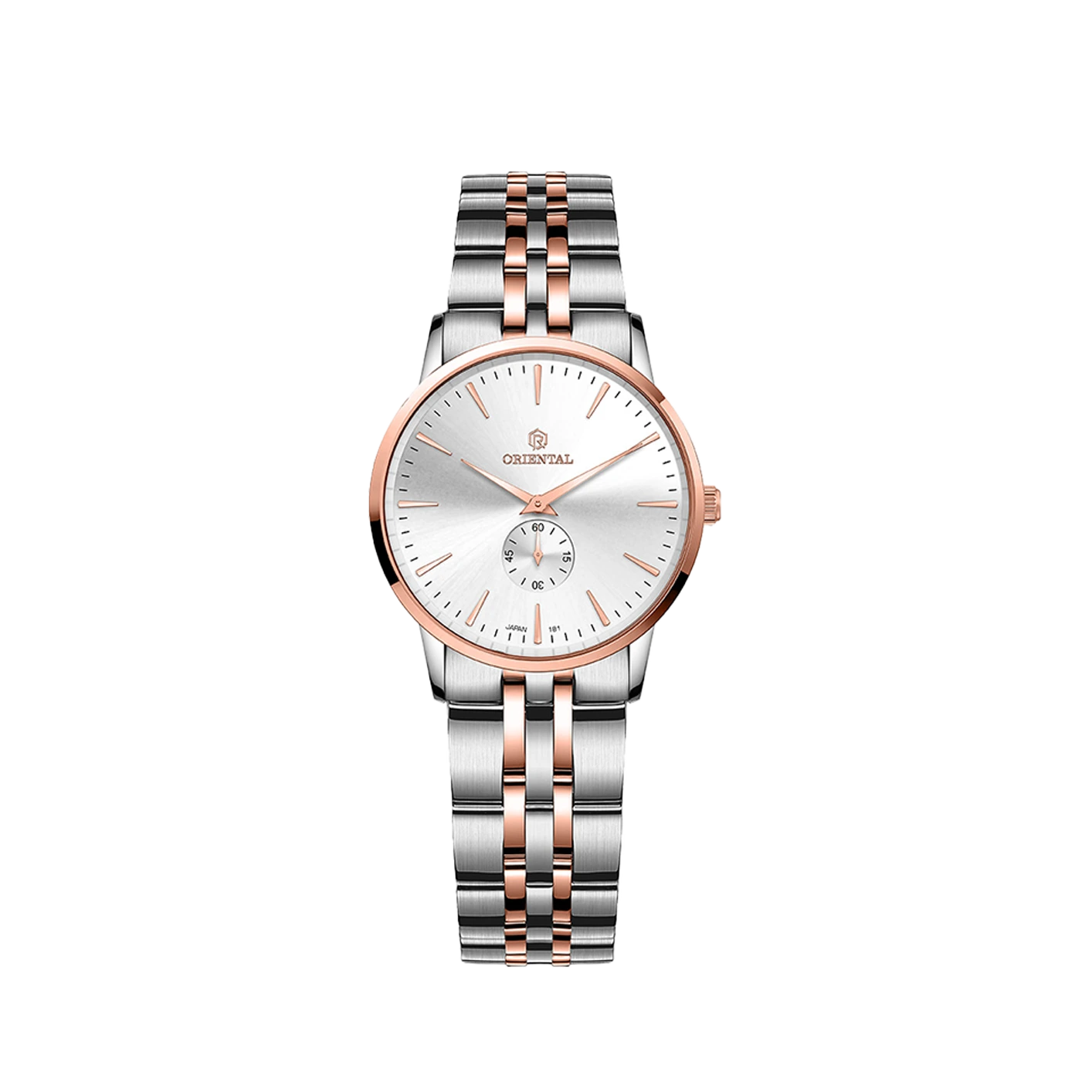 از نظر طراحی و مشخصات فنی، ساعت اورینتال زنانه کد O.SH181L-0006 با دقتی مثالزدنی ساخته شده است. قاب استیل ضدزنگ رزگلد در کنار بند فلزی هماهنگ، ترکیبی لوکس و مقاوم را شکل داده است. بند رزگلد بهگونهای طراحی شده که هم راحت روی دست بنشیند و هم استحکام کافی برای استفاده روزمره داشته باشد. صفحه سیلور در تضاد ملایم با قاب رزگلد، جلوهای دلنشین و کلاسیک ایجاد کرده که چشم هر بینندهای را خیره میکند. وجود ساعت زیر ثانیه در طراحی این مدل، آن را از بسیاری از ساعتهای رایج متمایز میسازد و به علاقهمندان ساعتهای خاص، تجربهای متفاوت ارائه میدهد.