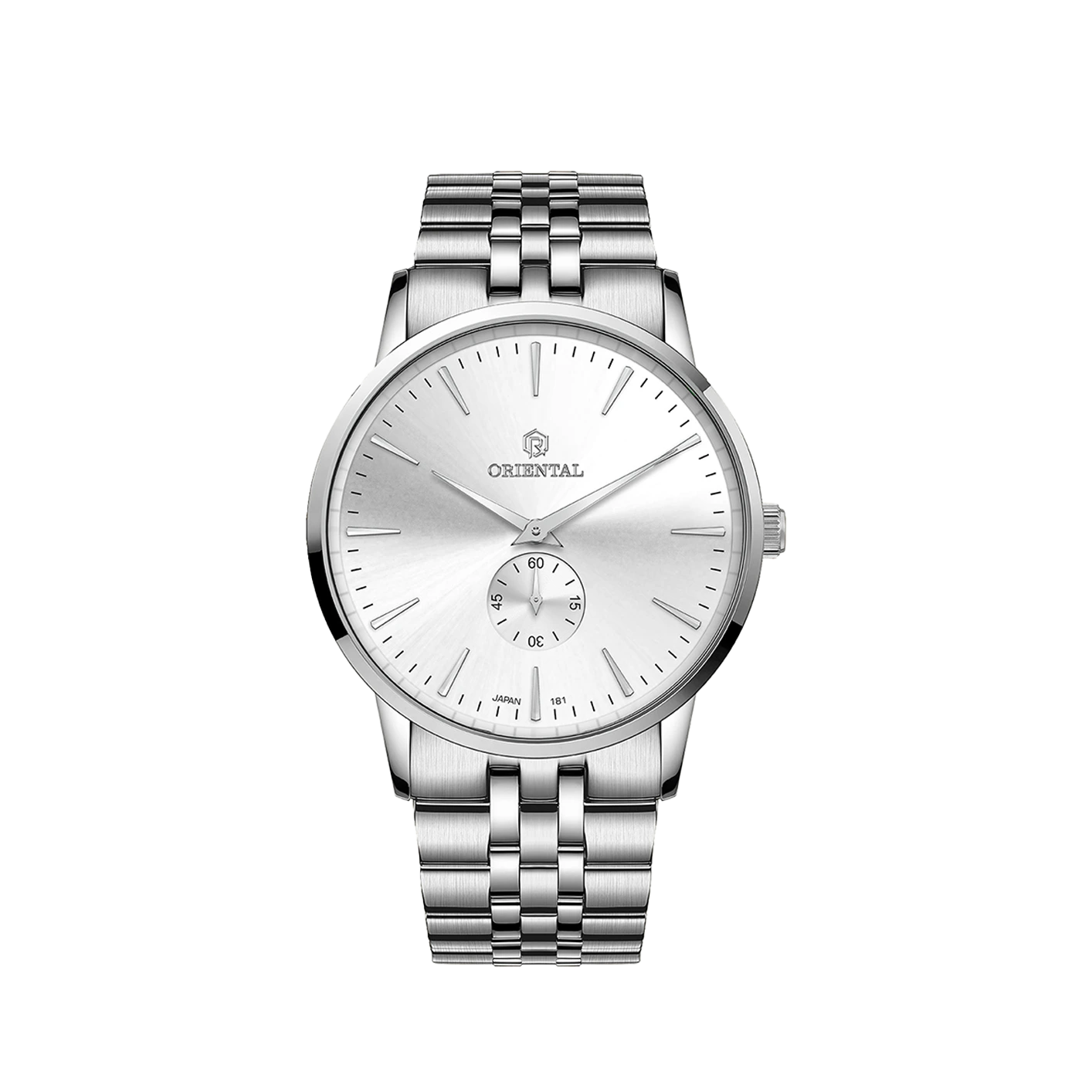 ساعت اورینتال مردانه کد O.SH181G-0004 با بند استیل و صفحه سیلور، ترکیبی از دقت بالا، طراحی کلاسیک و استایل لوکس برای مردان شیکپوش.