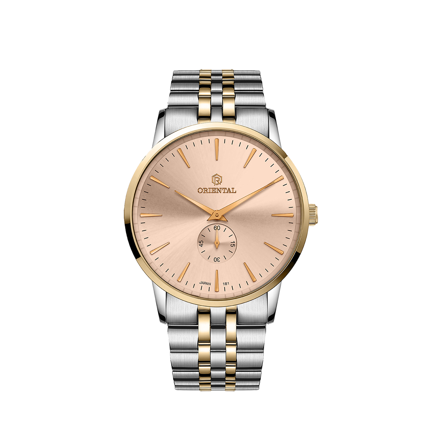 در طراحی ساعت اورینتال مردانه کد O.SH181G-0016، جزئیات با دقت فوقالعادهای در نظر گرفته شدهاند. قاب استیل ضدزنگ طلایی با سطحی براق و مقاوم، جلوهای لوکس و درخشان به ساعت بخشیده است. بند فلزی استیل طلایی نیز با ظرافت خاصی طراحی شده تا در عین استحکام، راحتی فوقالعادهای هنگام استفاده روزانه فراهم کند. این مدل دارای رفرانس ۱۸۱ بوده و از خانوادهی محبوب ساعتهای زیر ثانیه است؛ طراحی خاصی که نشاندهندهی سبک کلاسیک و اصیل در صنعت ساعتسازی به شمار میرود. صفحهی شامپاینی رنگ با جزئیات مینیمال، خوانایی بالا و جلوهای گرم و خاص دارد که در کنار عقربههای طلایی، زیبایی دوچندانی را رقم زده است.